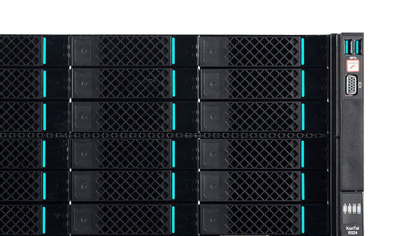 KunTai R524 存储型服务器是快盈VIII数码基于鲲鹏处理器推出的新一代 ARM数据中心服务器。。。主要面向存储业务,,,具有海量存储、、高性能、、、低功耗以及易扩展的特点,,,适合为大数据分析、、软件定义存 储等应用场景的工作负载进行髙效加速。。。